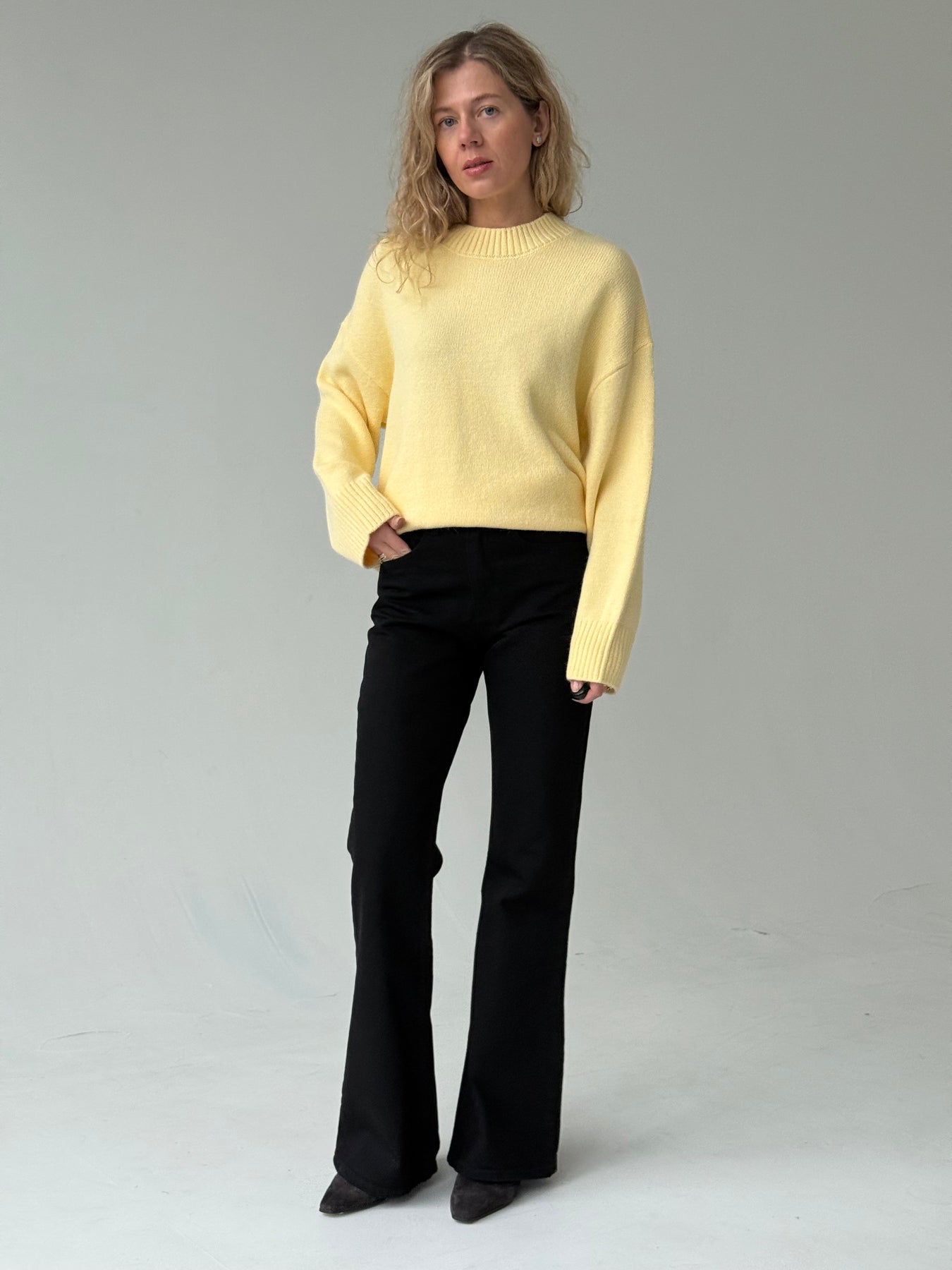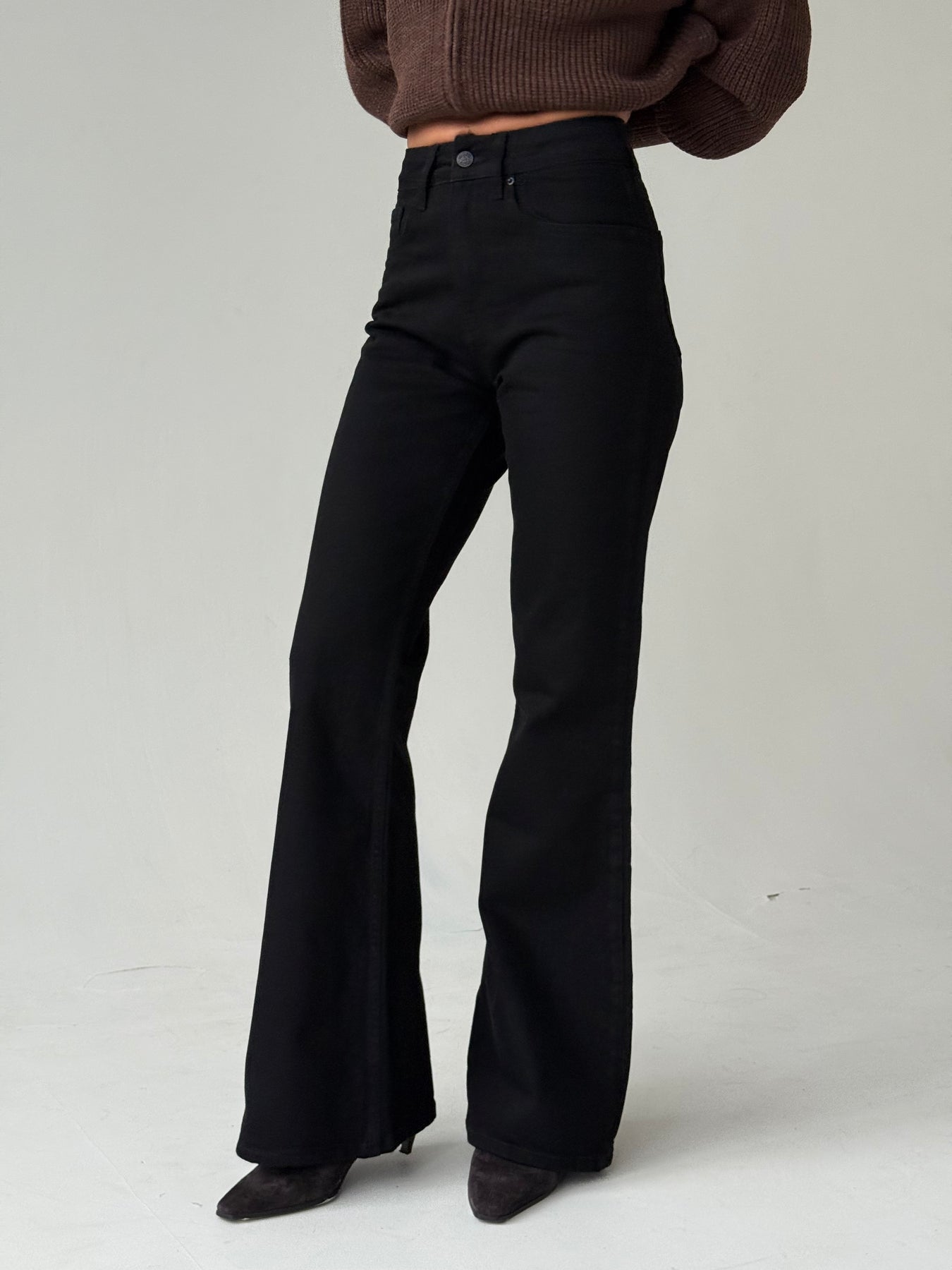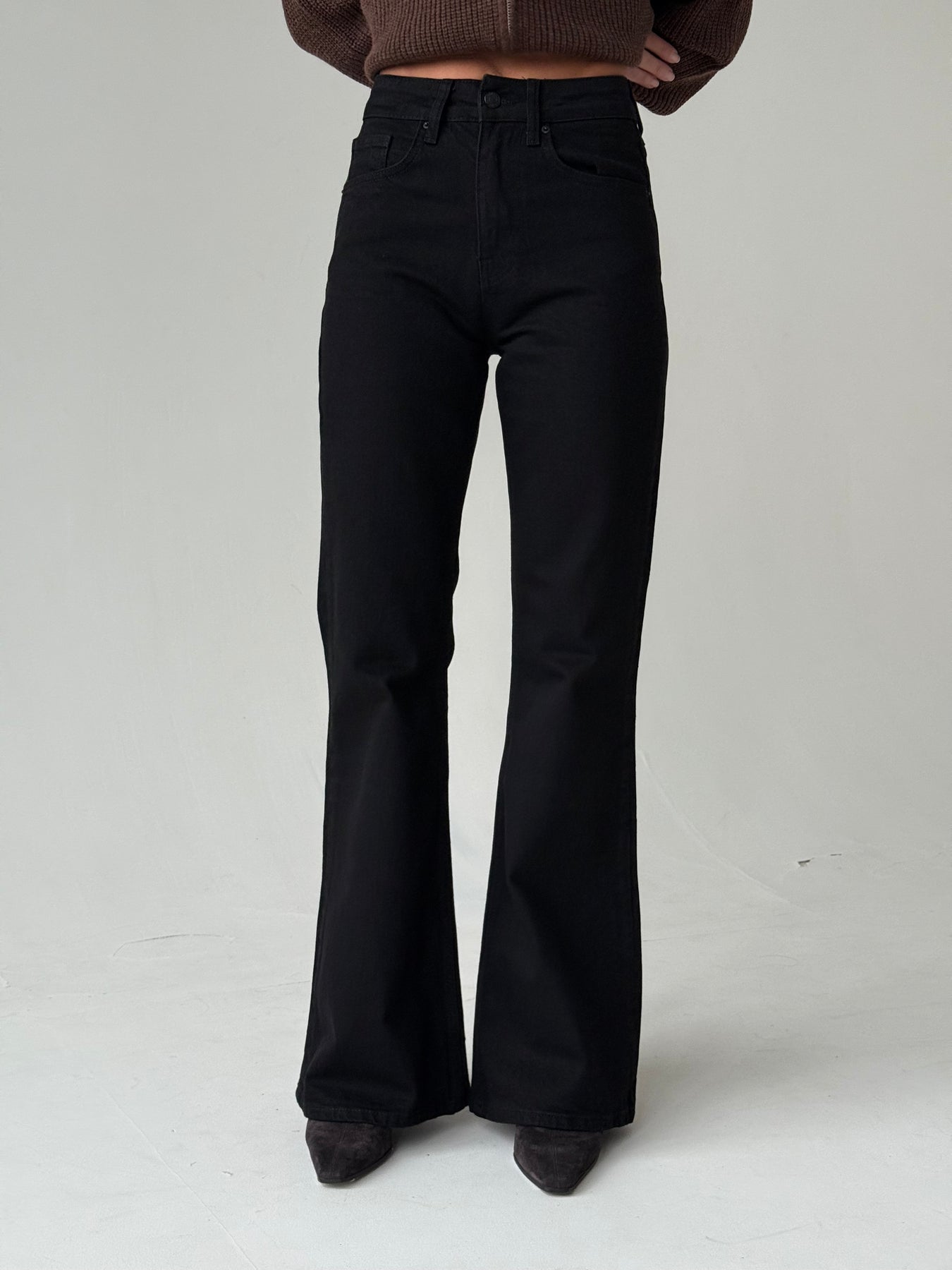 Zvanveida džinsa bikses ar vidēji augstu jostasvietu. Bikses ir no mīksta un patīkama auduma. Aiztaisās ar rāvējslēdzēju un metāla pogu. Priekšpusē un mugurpusē ir kabatas. Priemium audums.