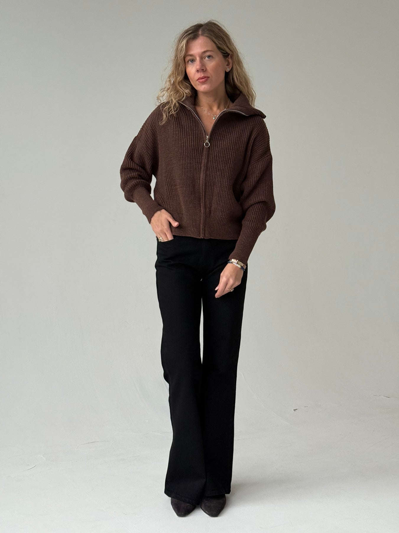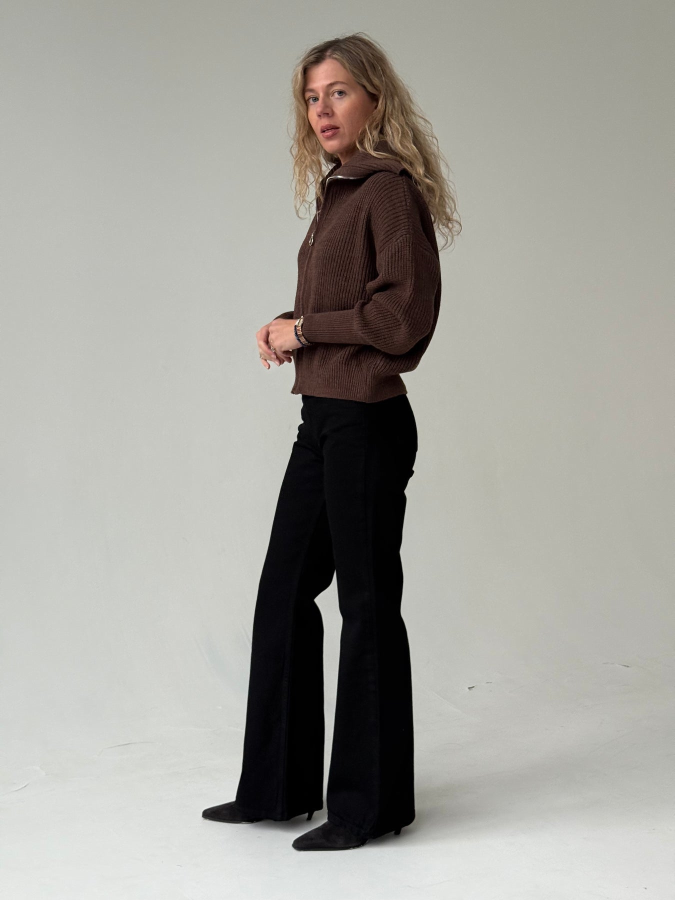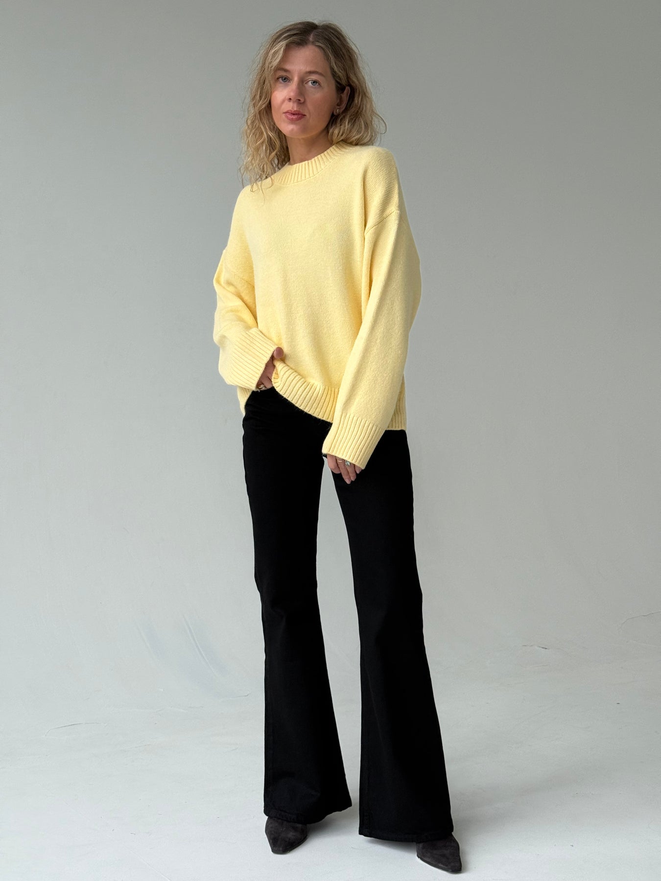 Zvanveida džinsa bikses ar vidēji augstu jostasvietu. Bikses ir no mīksta un patīkama auduma. Aiztaisās ar rāvējslēdzēju un metāla pogu. Priekšpusē un mugurpusē ir kabatas. Priemium audums.