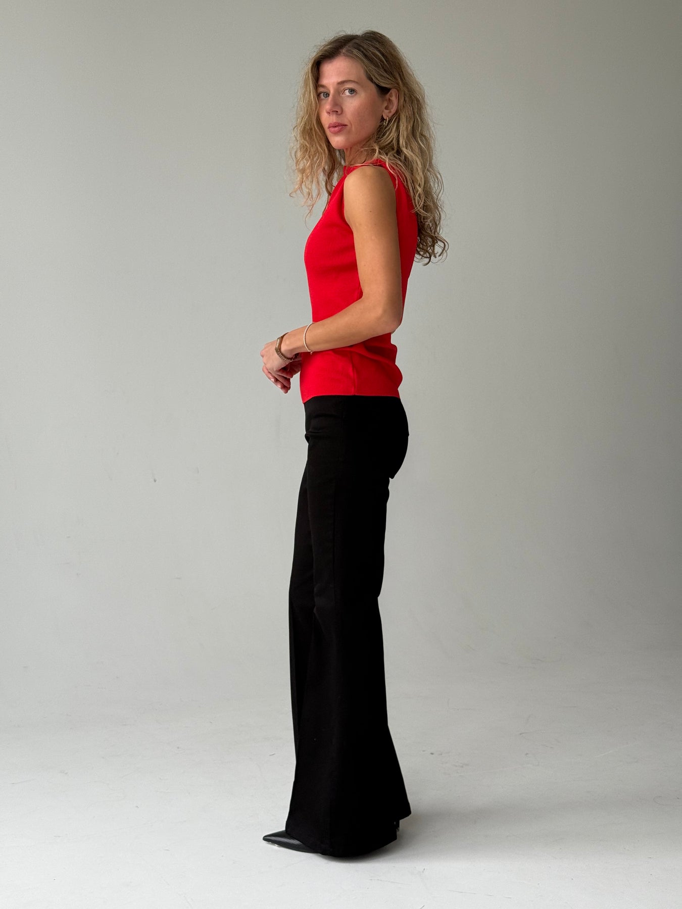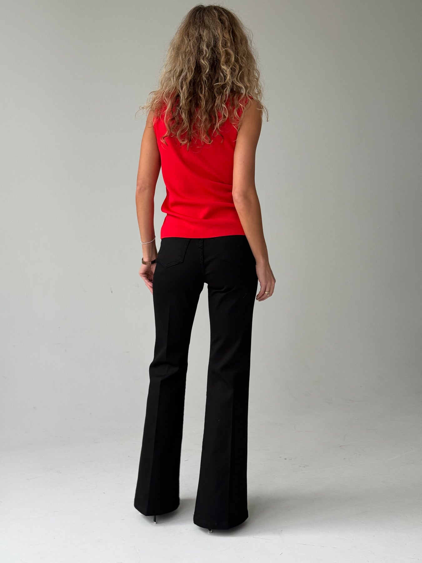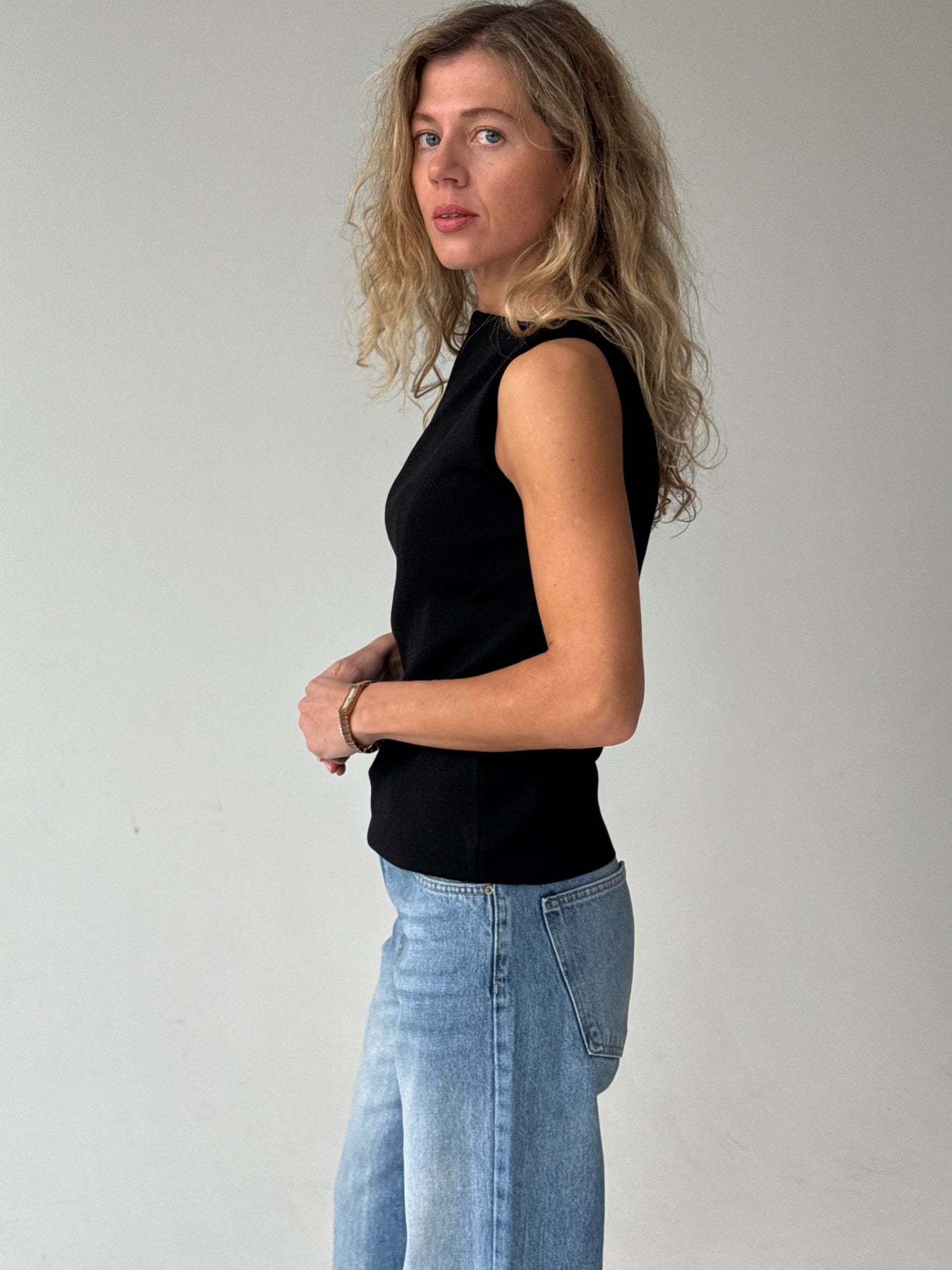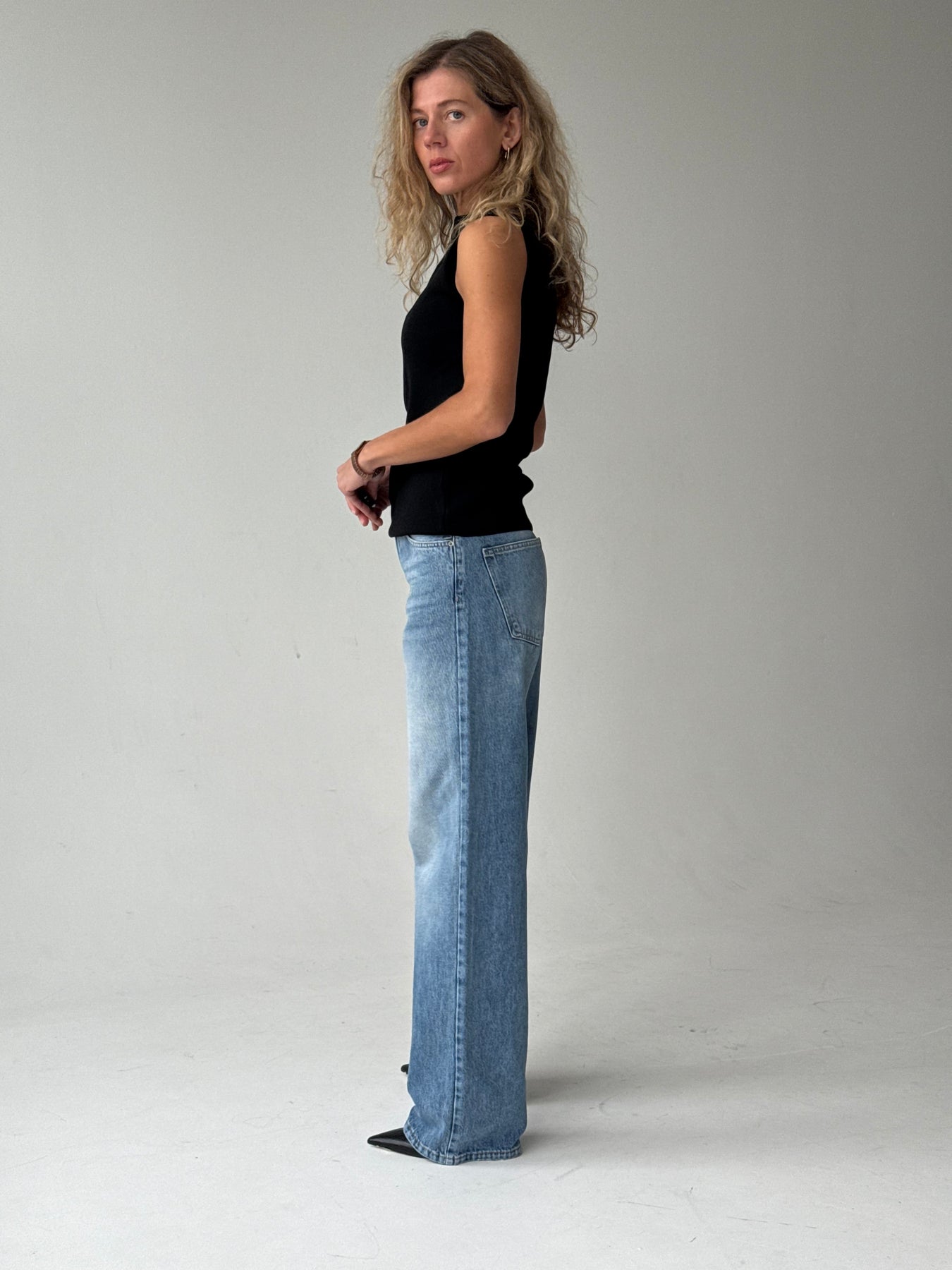 Adīts krokots viskozes tops ar laivas kakla izgriezumu. Tops ir pieguļoša piegriezuma. Tops ir no mīksta un elastīga auduma.