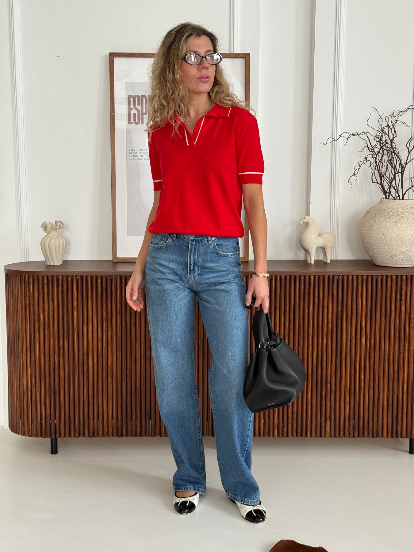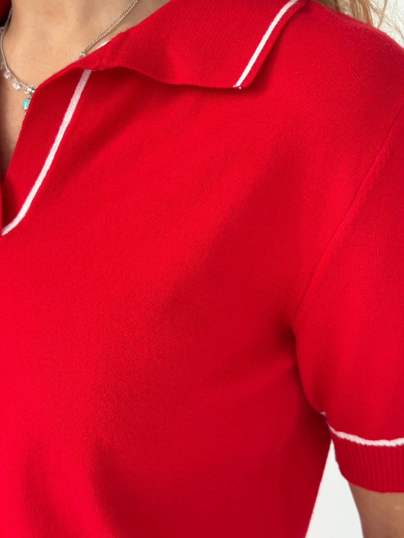 Viskozes polo tops ar atloku apkakli un īsām piedurknēm. Tops ir no elastīga un mīksta auduma. Tops ir pustaisna piegriezuma.