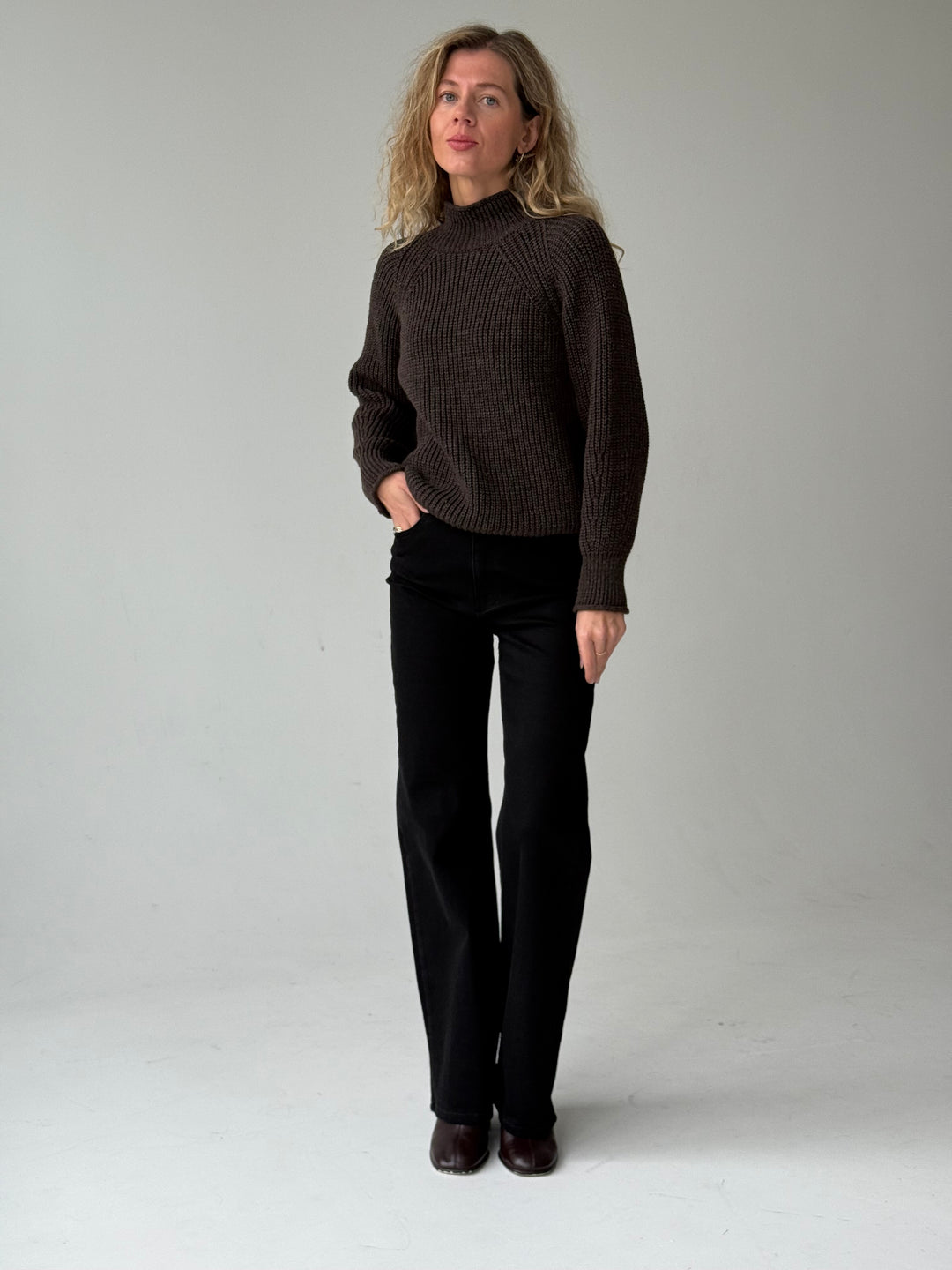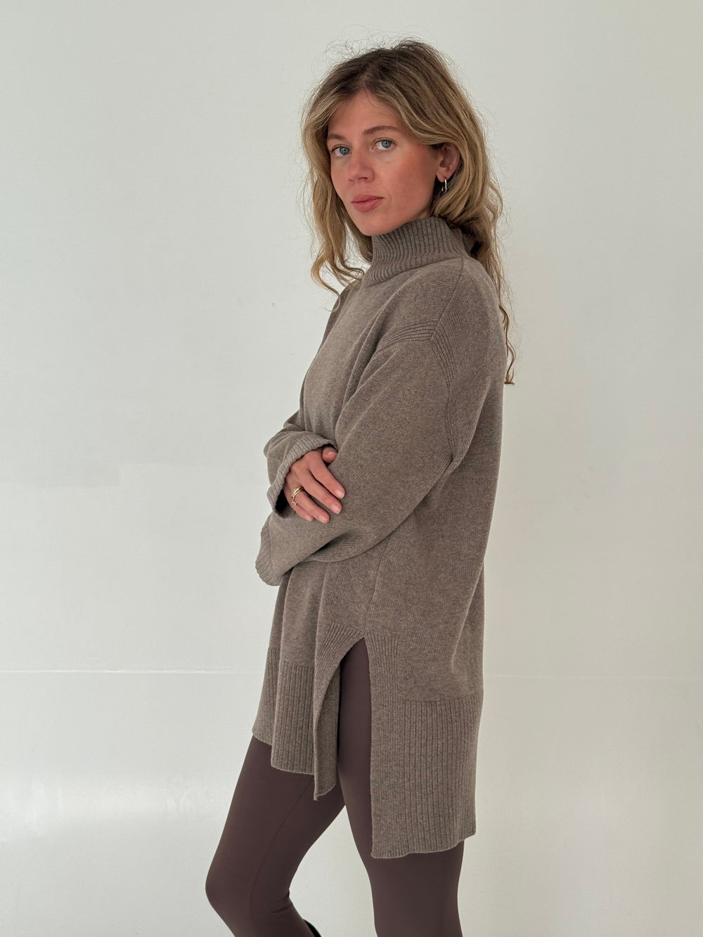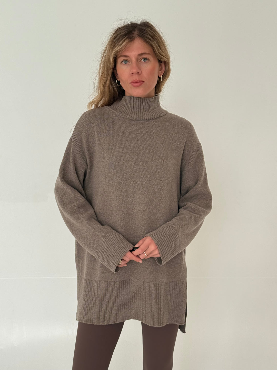 Oversize adīts vilnas džemperis ar augstu apkakli #01