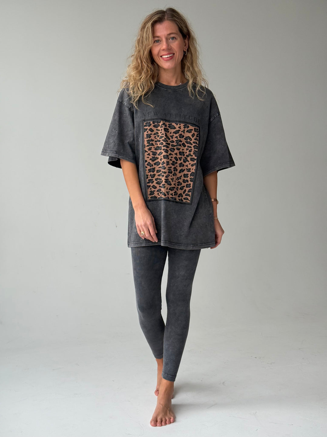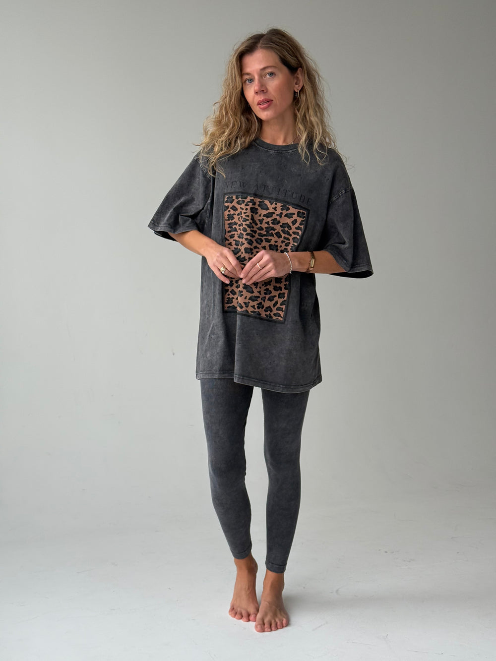 Pagarināts kokvilnas T-krekls ar balinātu efektu un apdruku #02