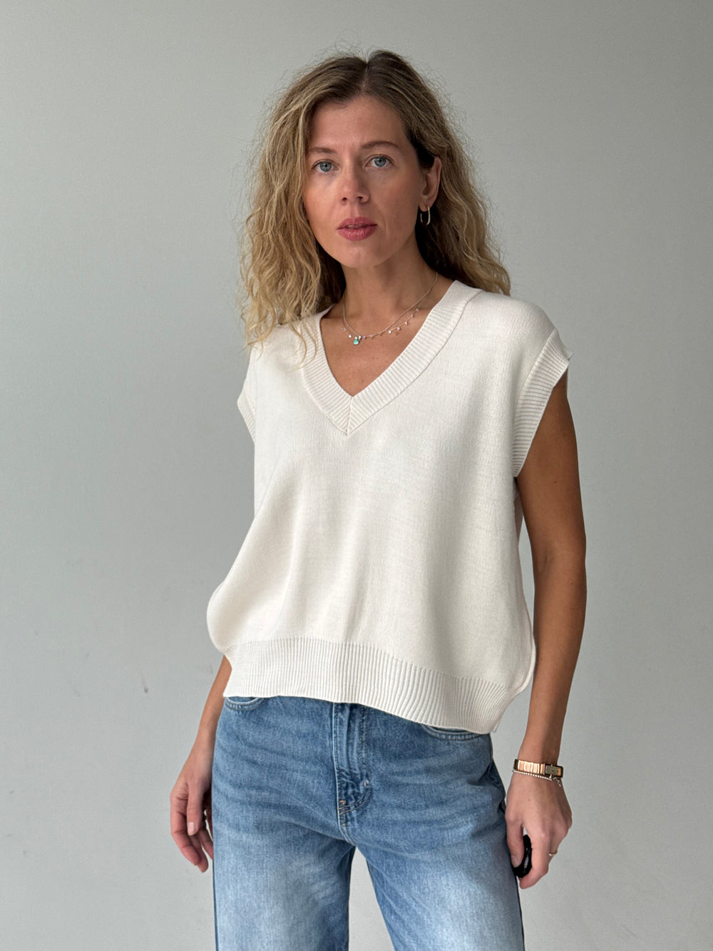 Trikotāžas plāns džemperis ar V-veida kakla izgriezumu