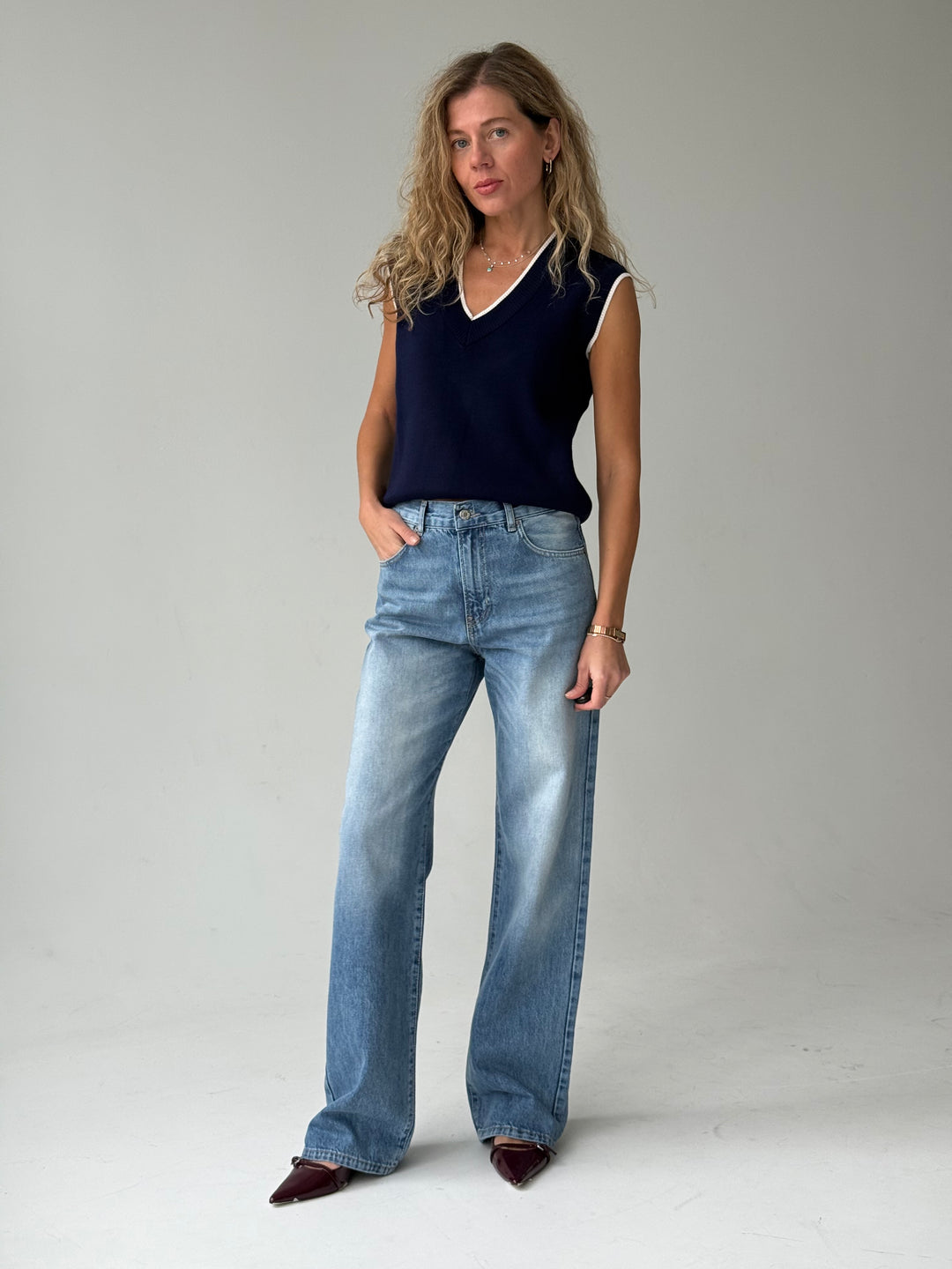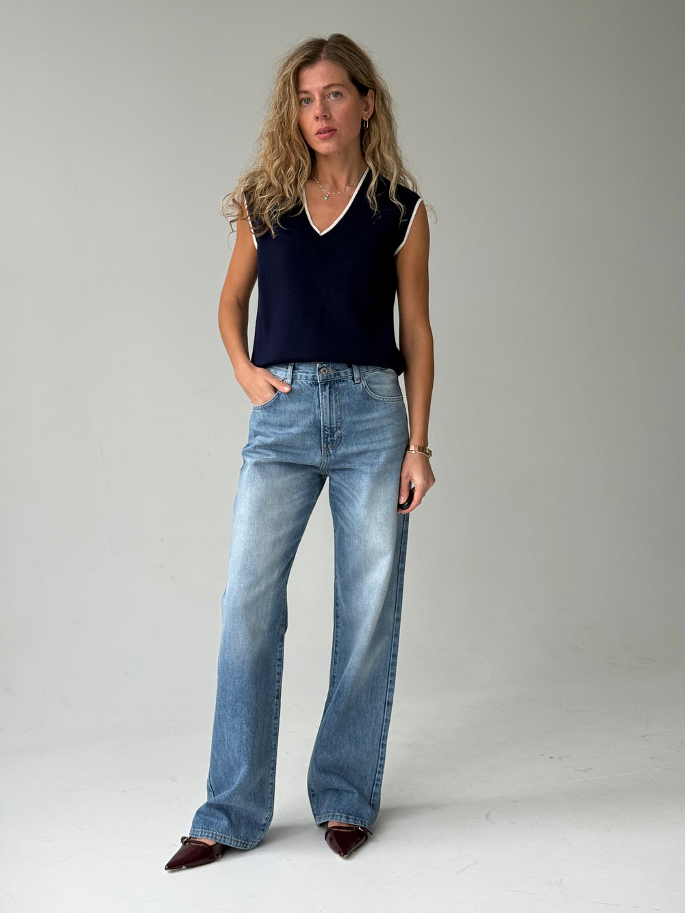 Taisnas džinsa bikses ar augstu jostasvietu #04