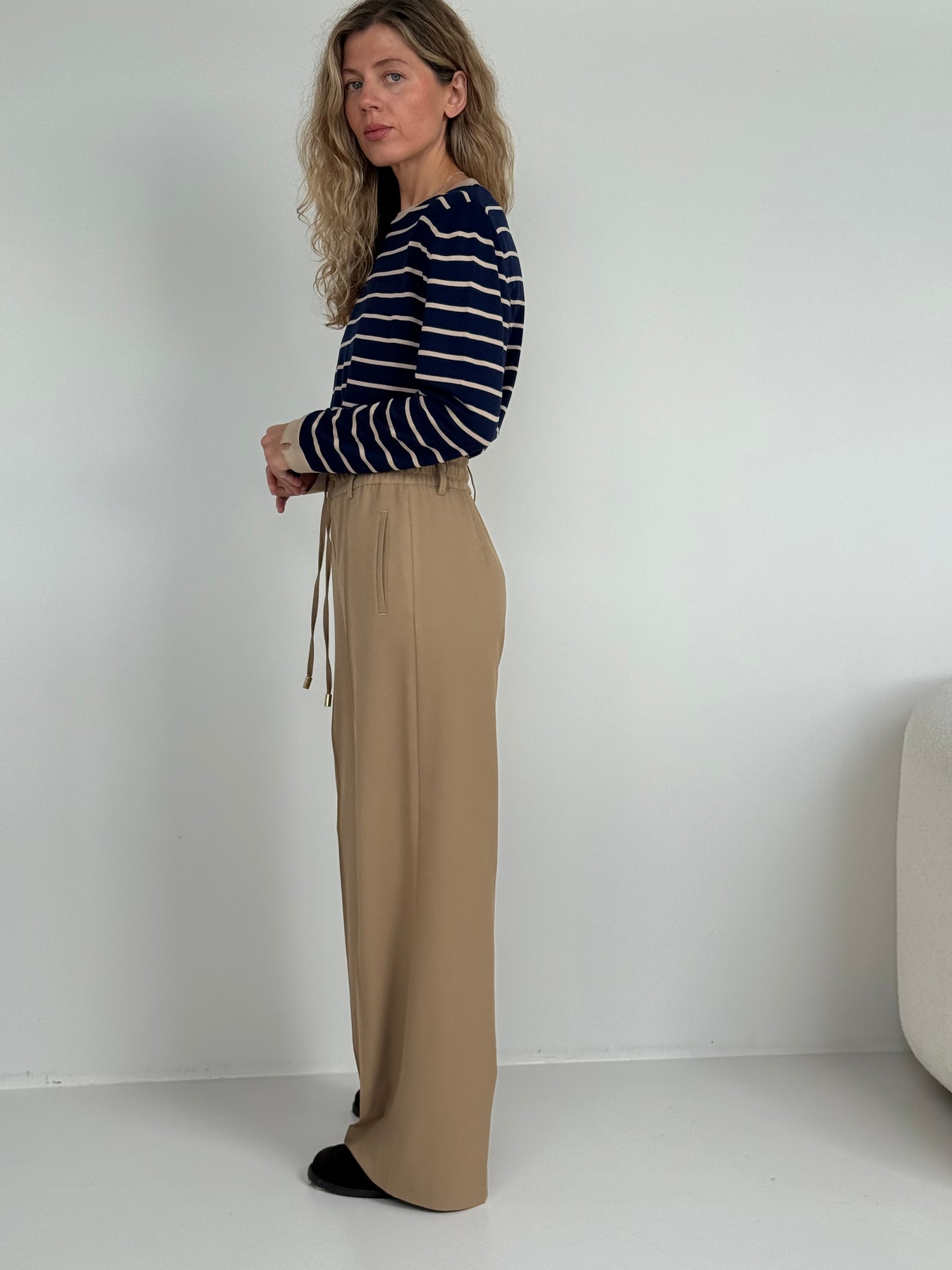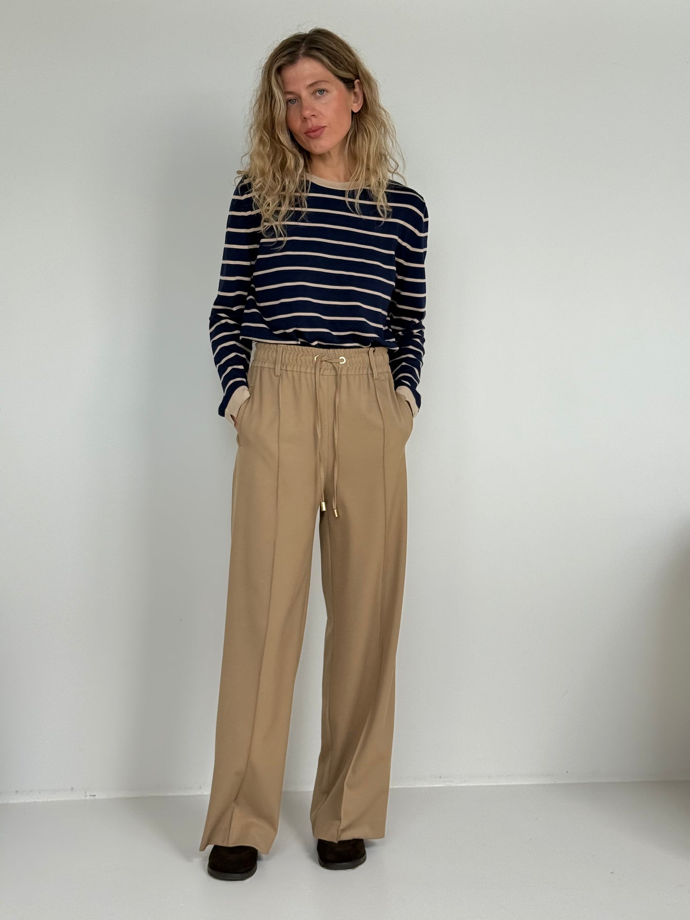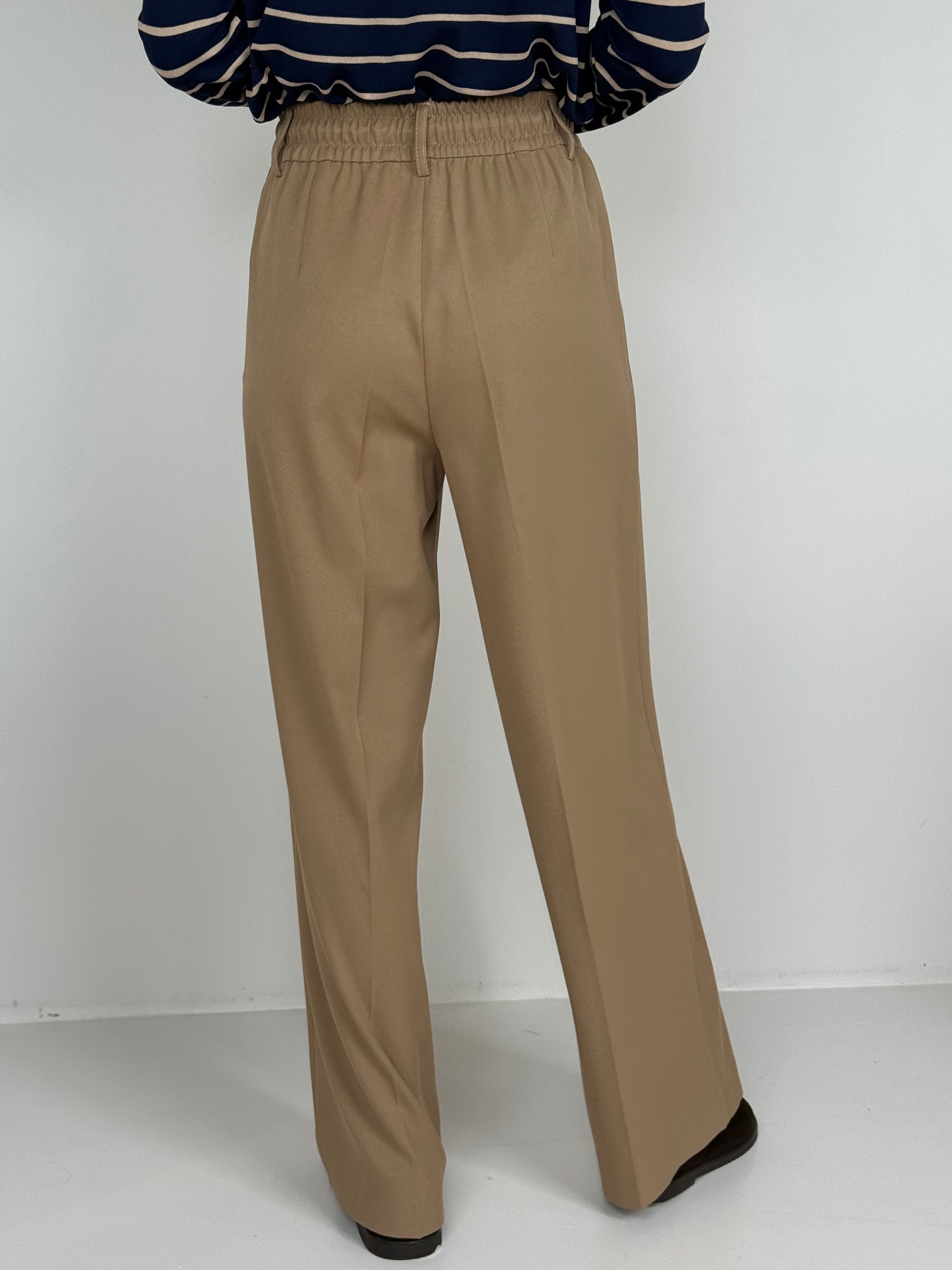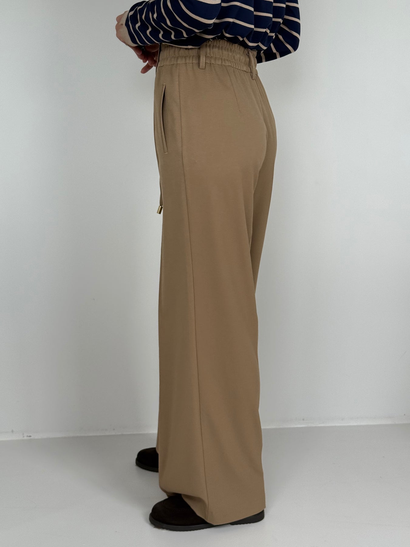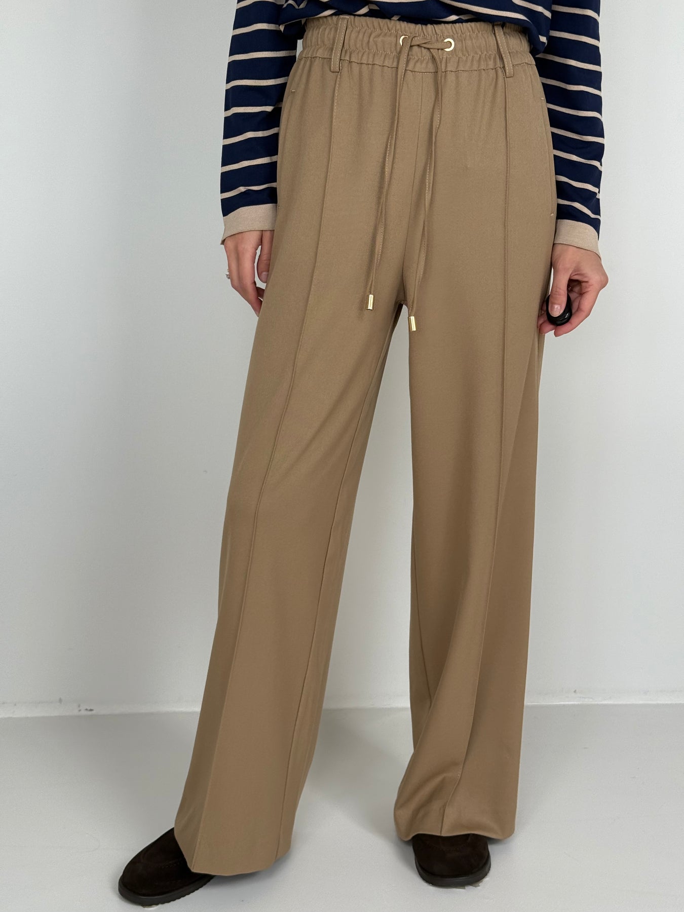 Viskozes jogger stila klasiskās bikses ar iestrādātu gumiju jostasvietā un savelkamu aukliņu. Bikses ir no mīksta auduma. Sānos ir divas kabatas. Bikses ir taisna piegriezuma.