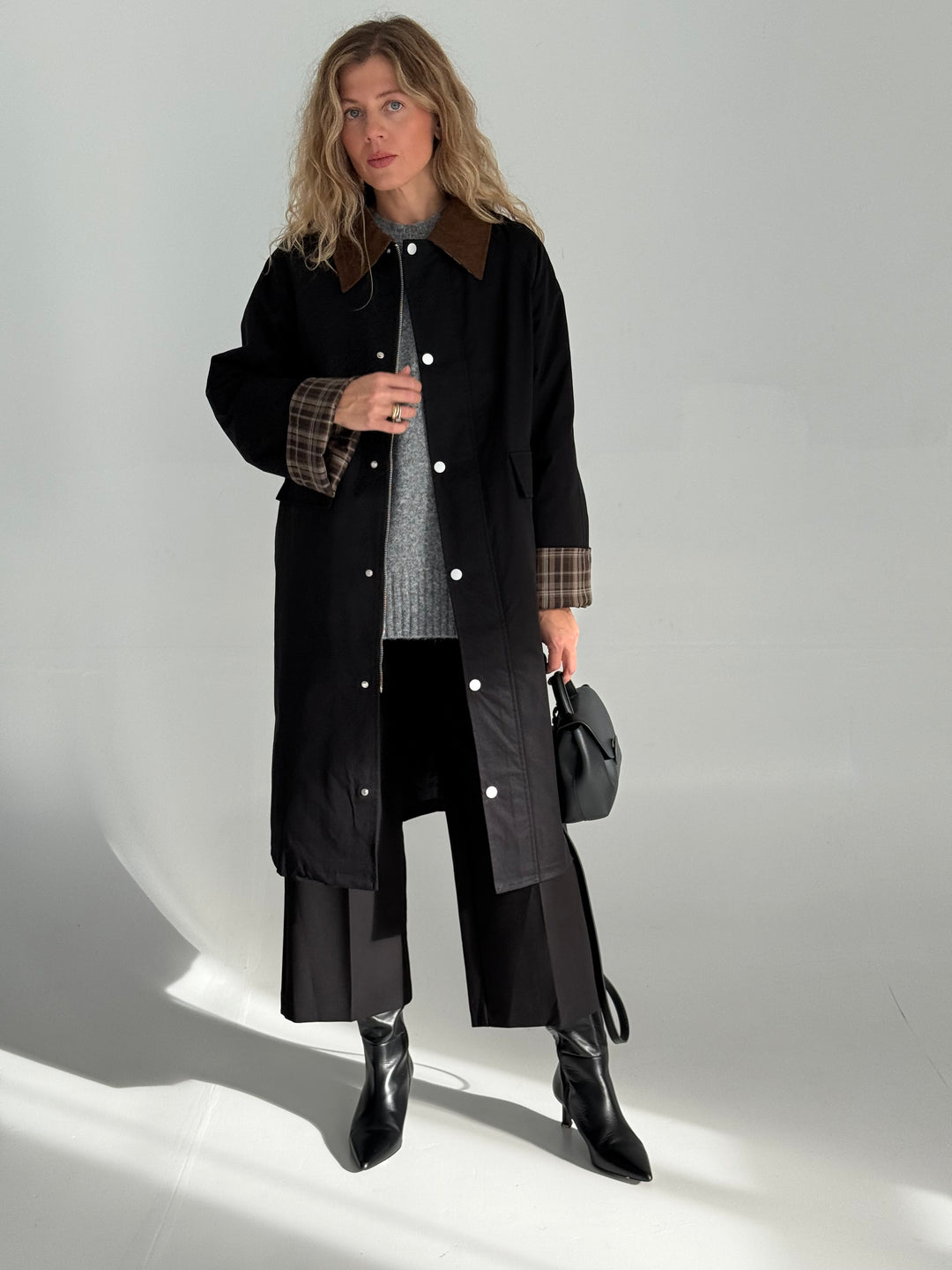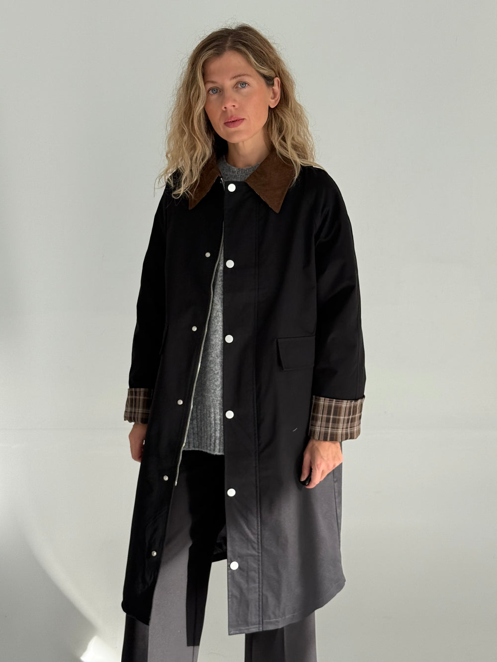 Rūtains vilnas mētelis ar siltinājumu