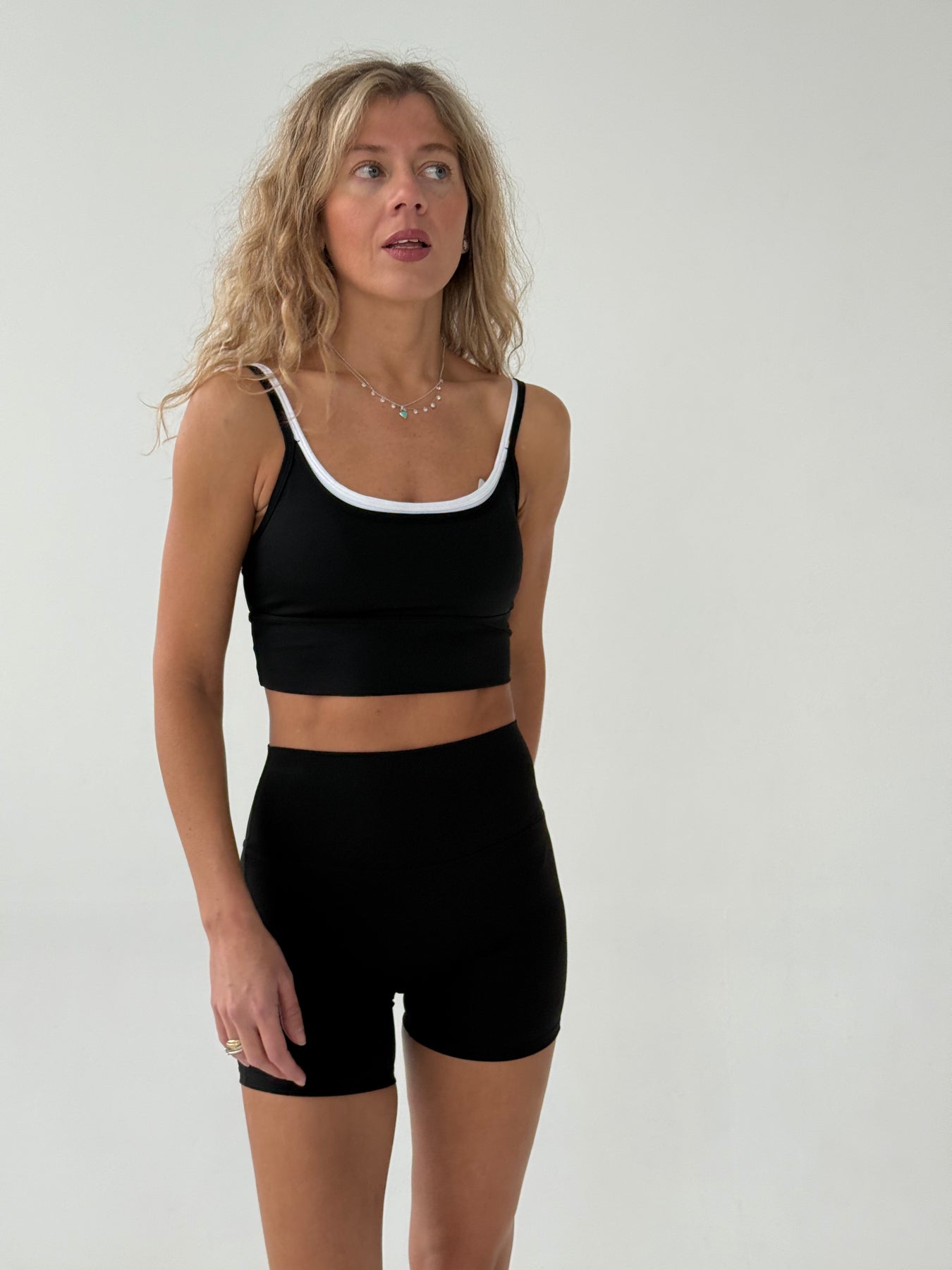 Sporta šorti ar augstu jostasvietu. Šorti ir no elastīga un mīksta auduma. Šorti ir pieguļoša piegriezuma.