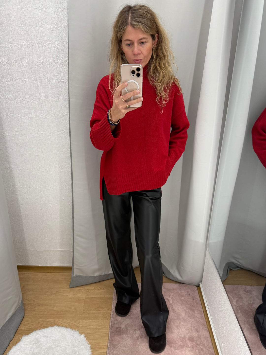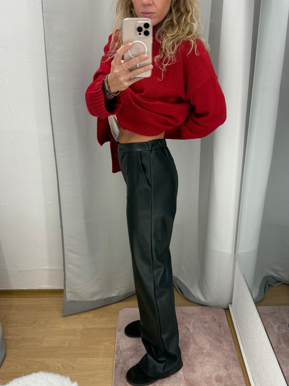 Taisnas ādas imitācijas bikses ar gumiju jostasvietā