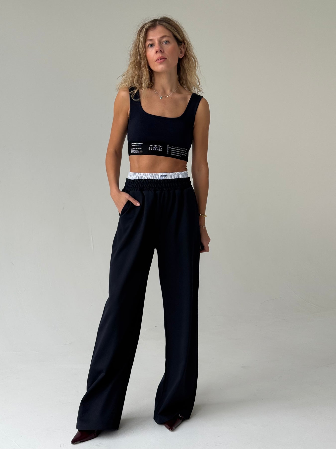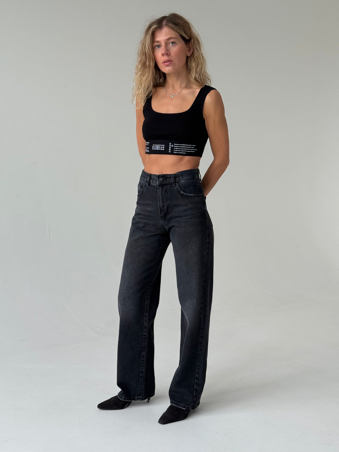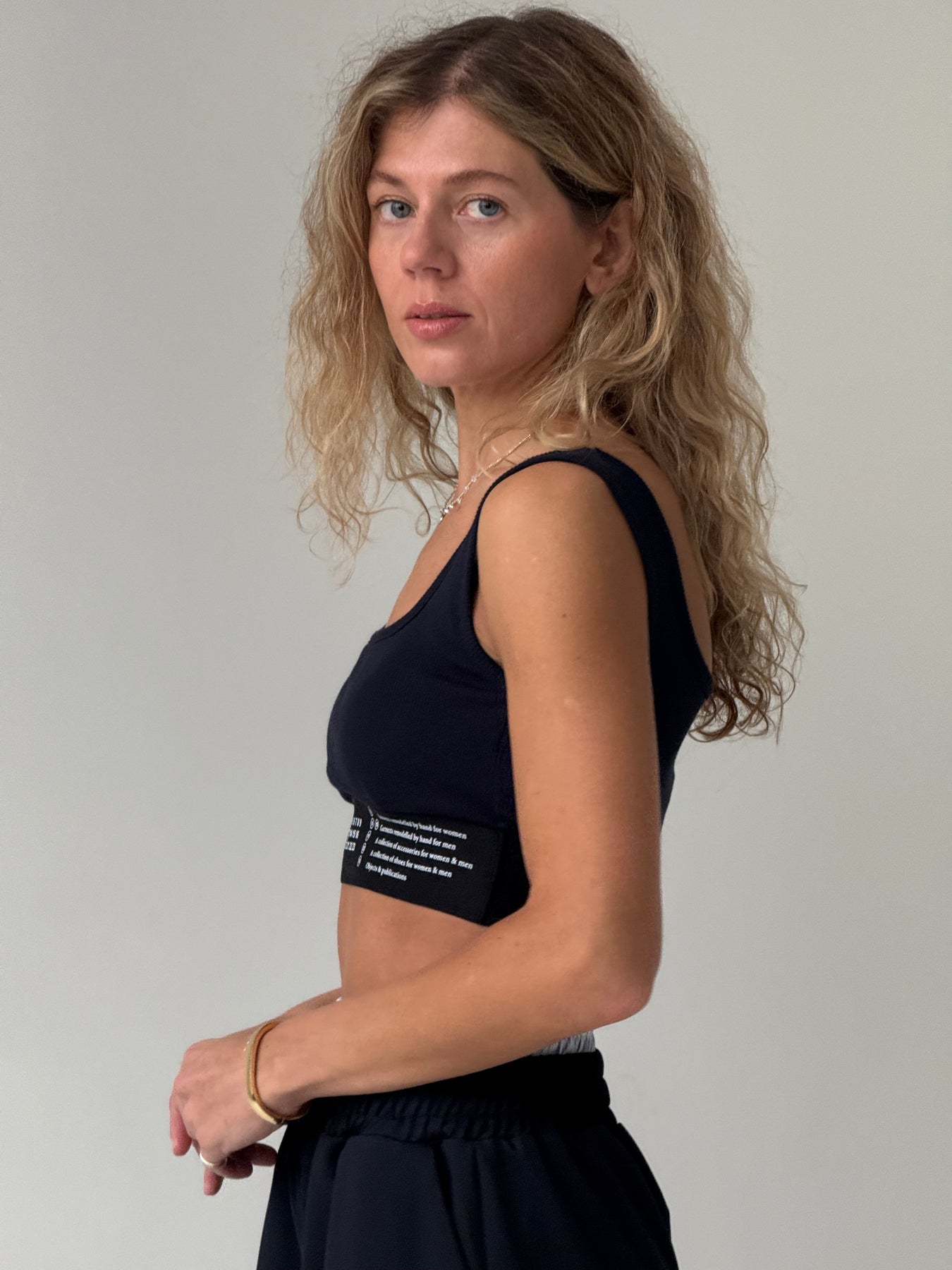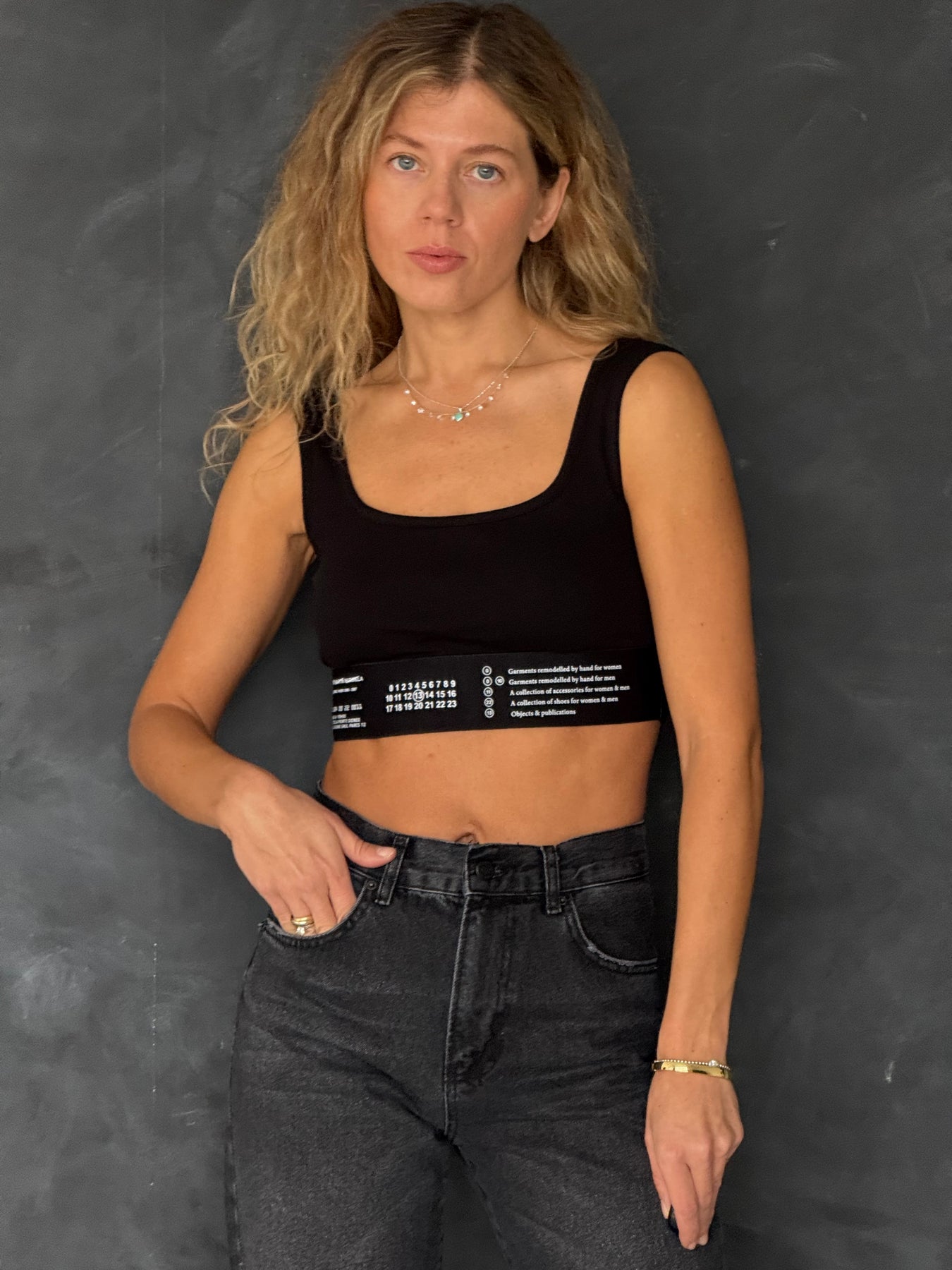 Īss kokvilnas rievots tops ar kvadrāta kakla izgriezumu un platām lencēm. Tops ir no mīksta un elastīga auduma. Tops ir pieguļoša piegriezuma.
