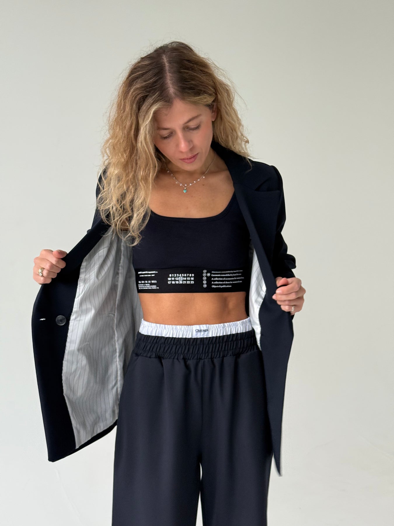 Modelei mugurā ir S izmērs (modeles augums ir 172 cm)