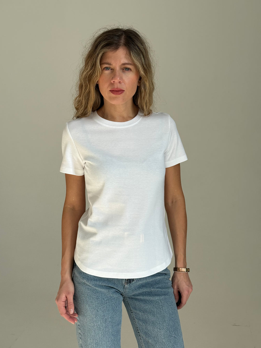 Slim fit kokvilnas rievots T-krekls ar uzrakstu