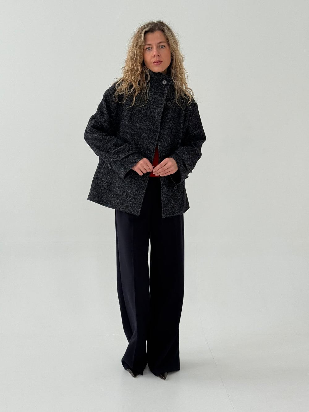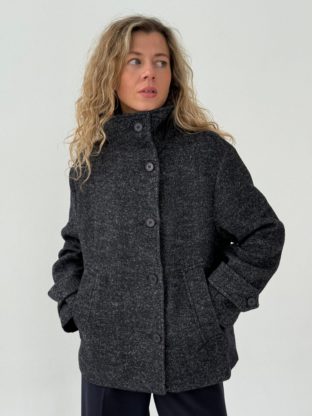 Vilnas pusmētelis ar augstu apkakli