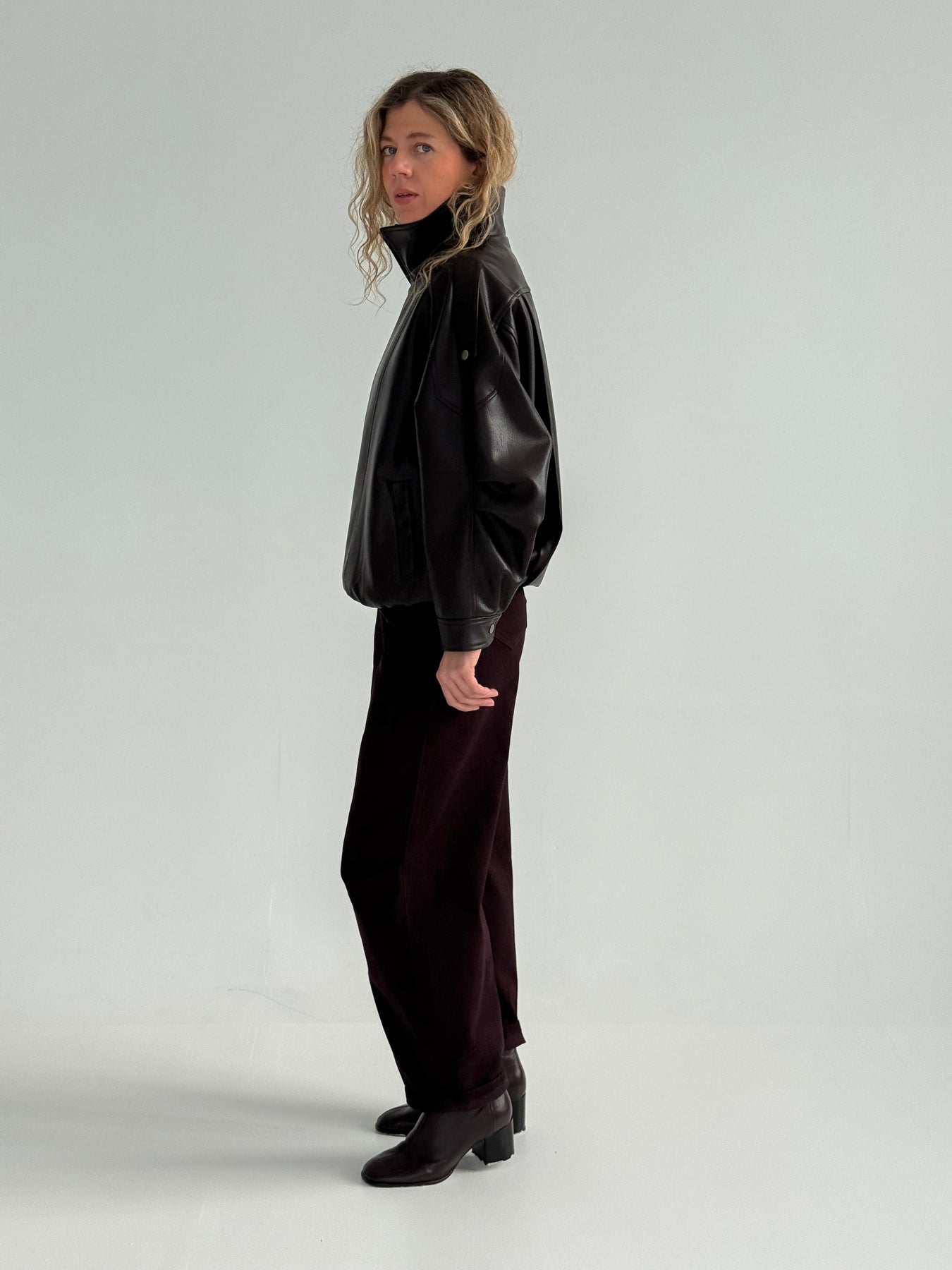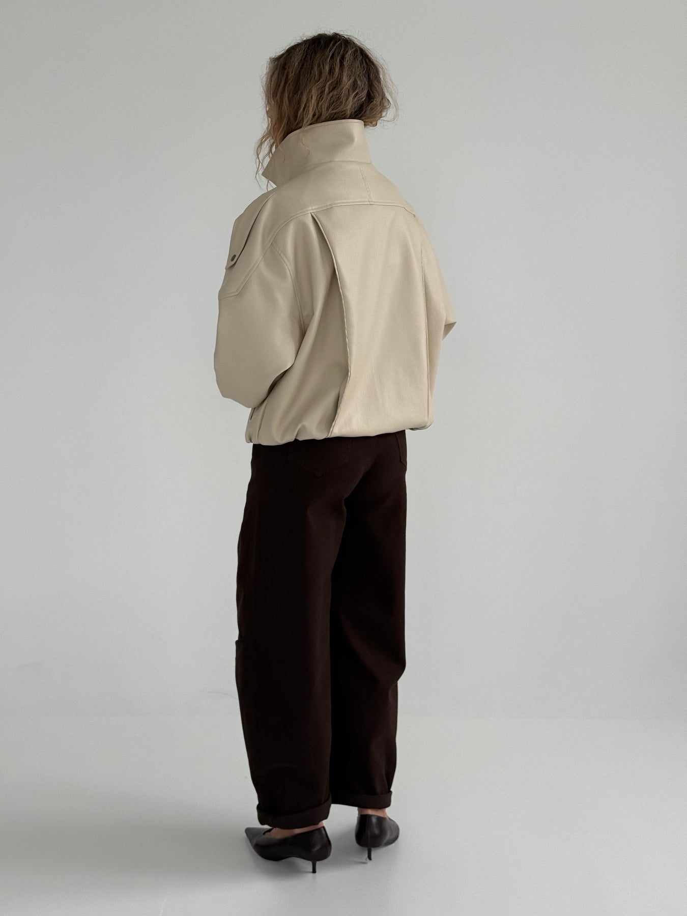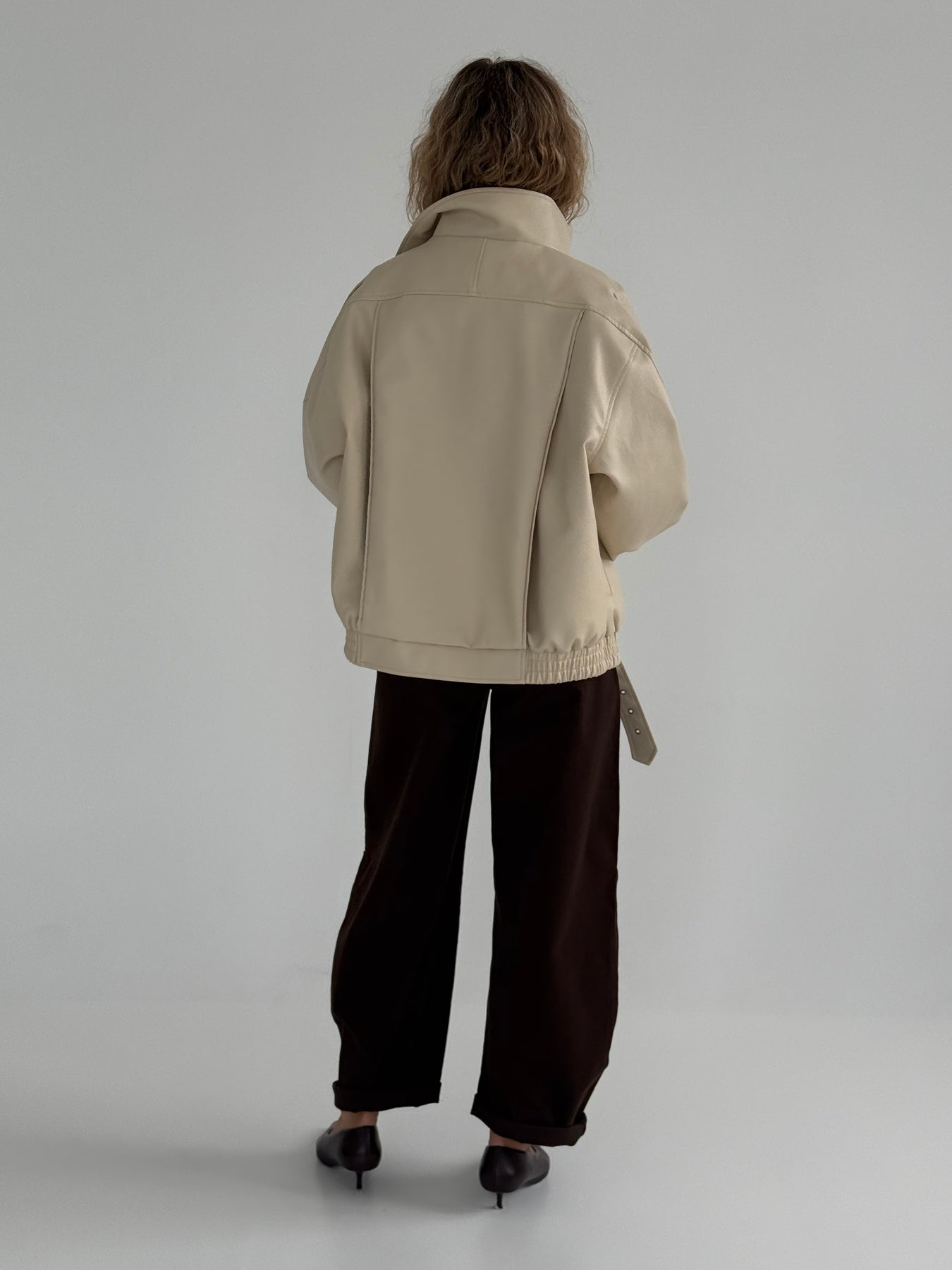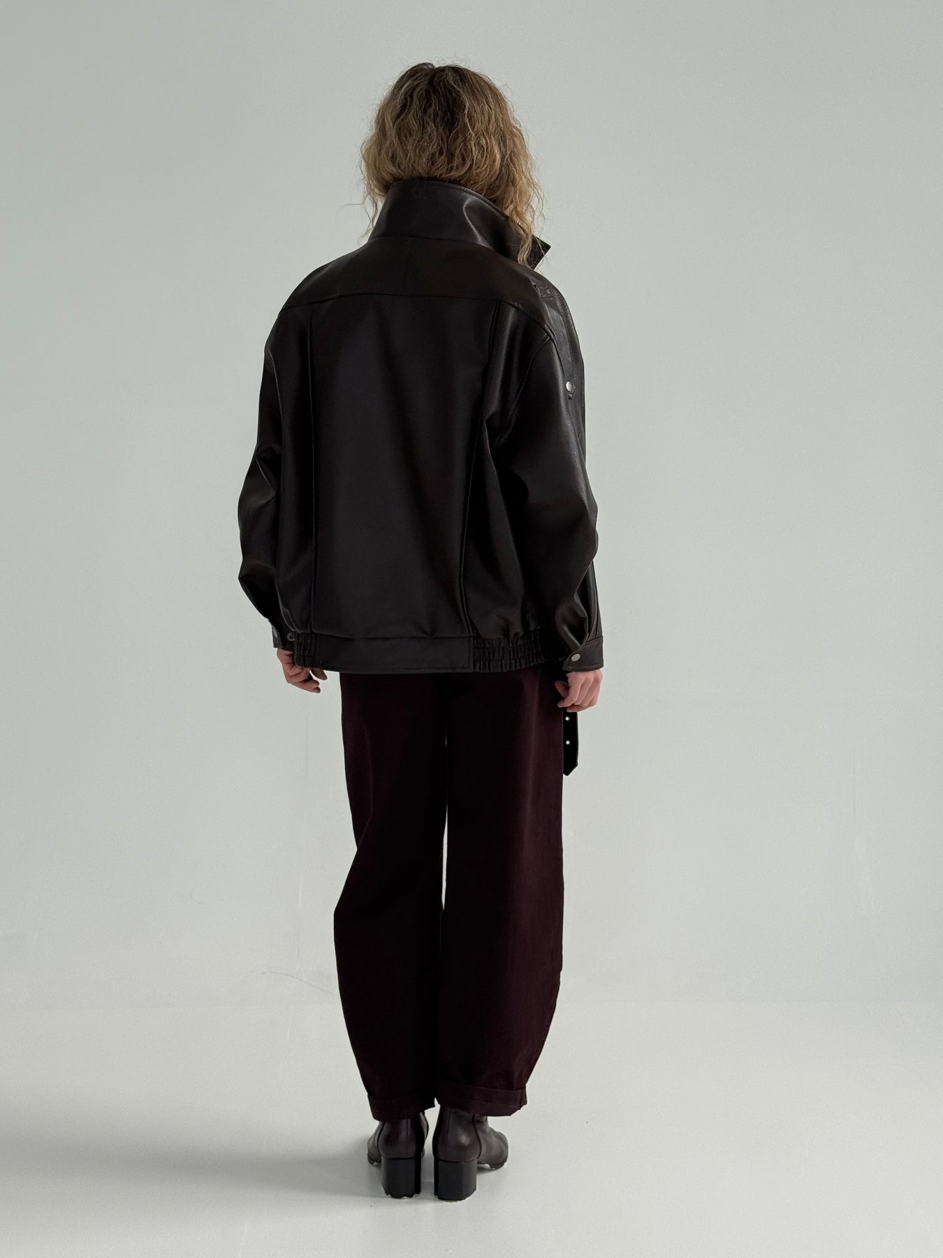 Ādas imitācijas bomber stila virsjaka ar augstu apkakli